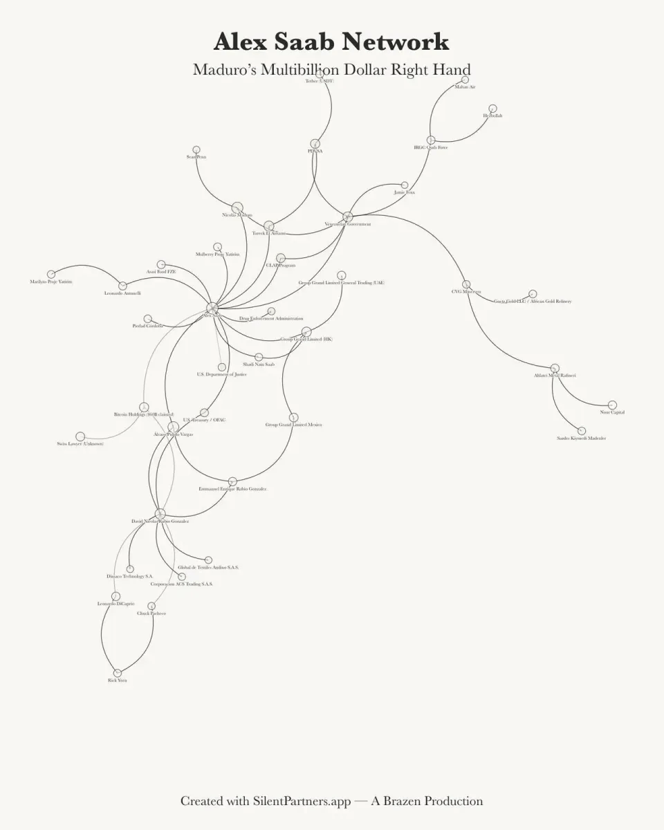 其中,被视为委内瑞拉影子金融体系“建筑师”的Alex Saab或成为关键人物,他曾担任委内瑞拉国际投资中心负责人,且与美国执法部门存在复杂的线人过往,其立场与行踪直接影响资产走向,而在2020年6月12日,Saab在前往伊朗途中,于西非海岸附近的佛得角进行加油停留时被捕。