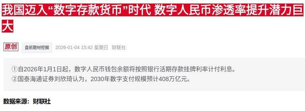 点击次数: 狗狗币,狗狗币走势,狗狗币怎么买,狗狗币在哪买,狗狗币价格,狗狗币挖矿,狗狗币官网,狗狗币交易平台,狗狗币钱包,狗狗币钱包下载,狗狗币最新消息,狗狗币注册,狗狗币开户,狗狗币下载网址,狗狗币APP2026年1月1日起,数字人民币钱包里的余额能算利息了——按银行活期存款利率来,这可是全球第一个给央行数字货币计息的国家。截止去年11月末,数字人民币已经处理了34.8亿笔交易,总金额16.7万亿元;还有专家算过,2030年数字支付规模可能到408万亿元,要是数字人民币渗透率到10%,交易额就得40多万亿。