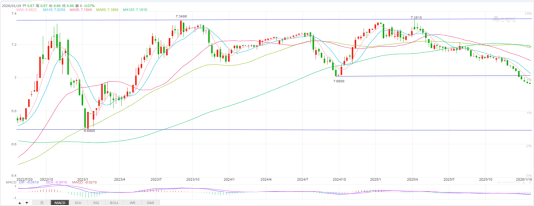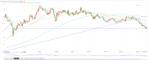 本周一早间,国内相继公布了2025年全年GDP增速为5%,符合市场预期。而四季度GDP年率虽然较前值4.8%跌至4.5%,但也较为符合市场判断。显然2025年国内经济在持续的政策引导下,高质量发展取得新成效,也是对于人民币升值起到了重要的作用。周一亚洲市场受到美元指数回落的影响,美元兑人民币最低跌至6.9625。由于特朗普周日发文称,对法国、德国等8个欧洲国家加征10%关税的信息,引发美指回落走势,如果周内该事件继续发酵,美指有望进一步回落,因此人民币仍存在升值的空间。