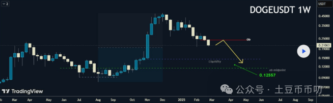 Hunter 认为 0.24 美元是狗狗币价格预计会在此区域作出反应然后走低的关键阻力区。他警告称,如果未能突破这一阻力位,可能引发进一步下跌,从而导致短期内出现额外的抛售压力。较低水平的流动性扫荡也可能加速下跌趋势。