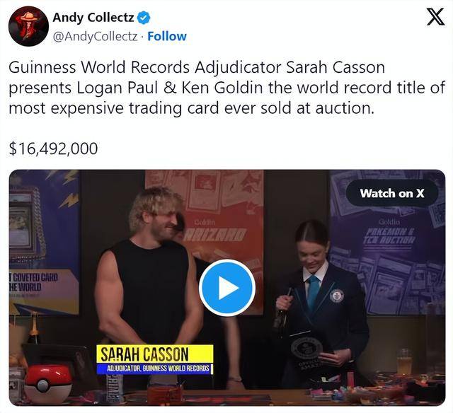 2021年,罗根·保罗以527.5万美元买下这张卡,当时就已经刷新纪录。
