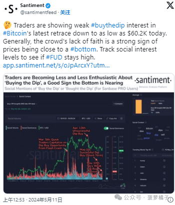 Santiment 表示,比特币最近的回调导致交易员出现适度的“逢低买入”活动,这表明价格已经触底。Bitfinex 分析师认为,经济放缓将持续到初夏,直到美联储在 6 月份实施资产负债表缩减限制措施为止。
