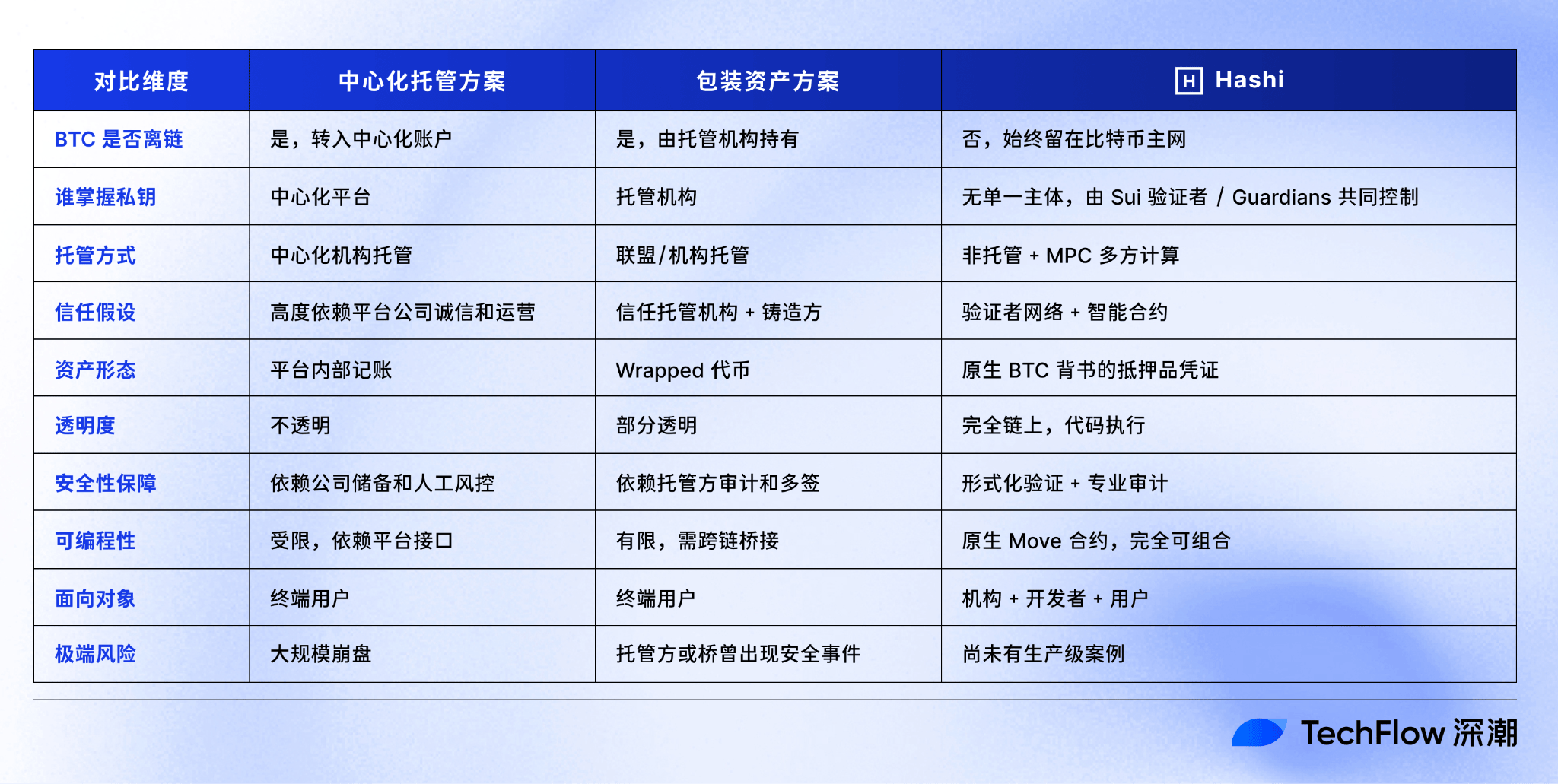 换句话说,Hashi 提供的不是一个封闭的金融服务,而是一种底层能力,让原生 BTC 成为 Sui 智能合约可以直接调用的抵押品。