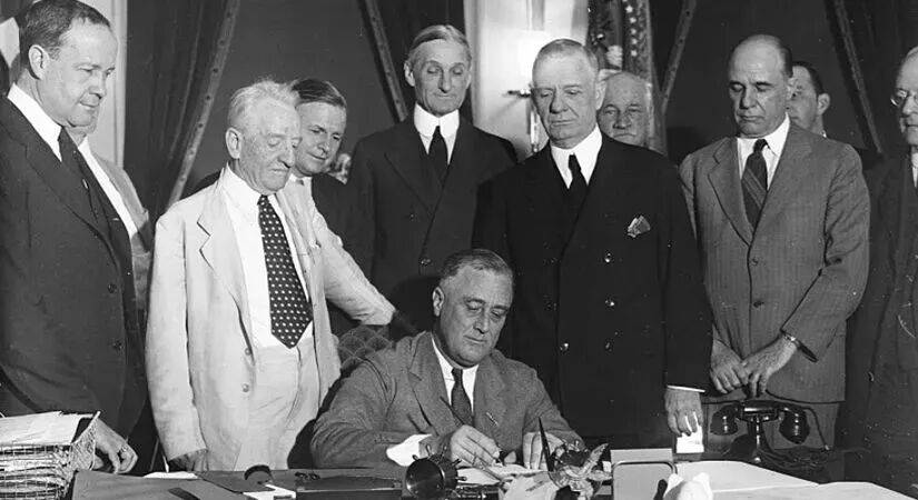 咱们往前追溯,1929 年经济危机,罗斯福总统已经玩儿过一毛一样的事情。