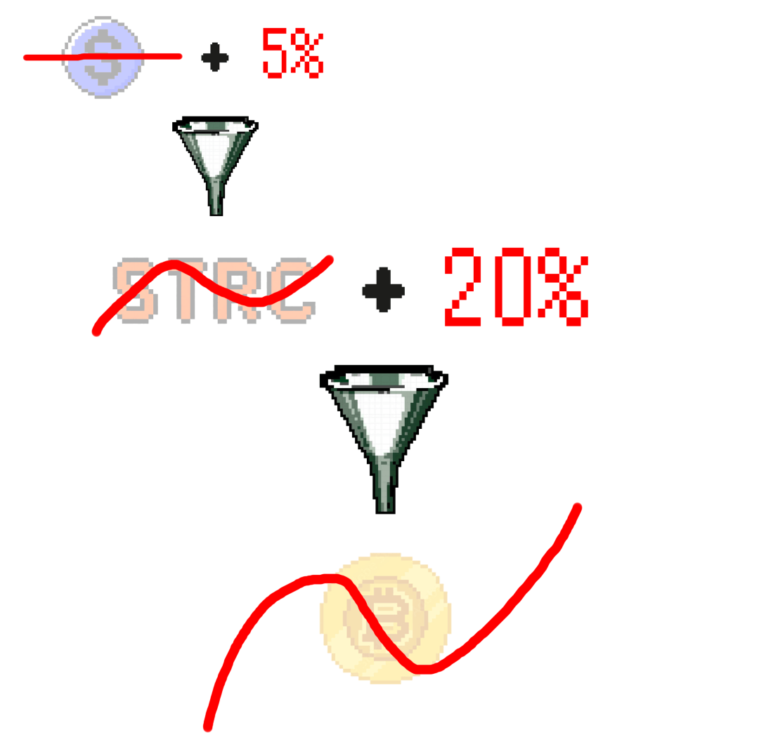 如果你什么波动都接受不了,那么你就可以拿稳定币的收益,也许是 5%。(反正会高于美债的利息,低于 STRC 的利息)