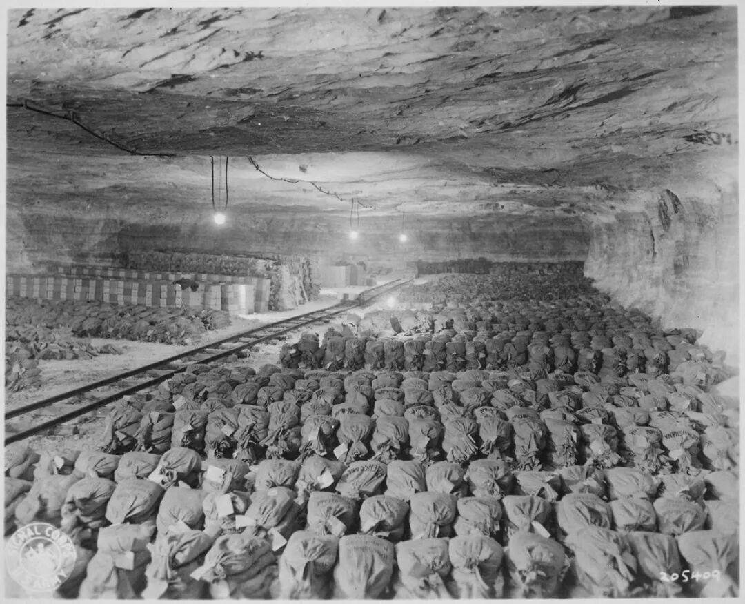 战后美军在德国默克斯盐矿中发现了 100 多吨成袋的黄金,以及各种艺术品(图中是马奈的《在温室》)。