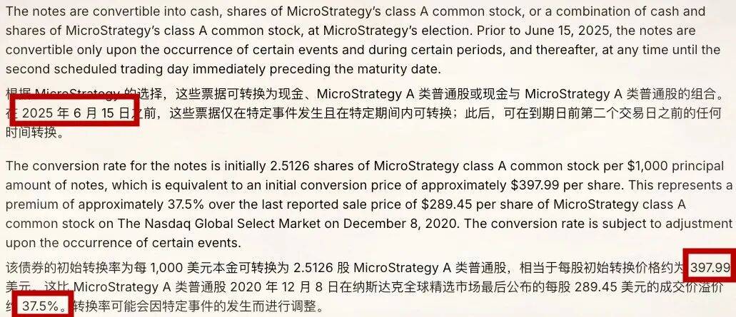 如果当时股价高于转股价,那么一定是因为比特币价格走高,公司肯定赚得更多,我把股票给你皆大欢喜。(反正没有你的支持我也不可能买更多比特币,公司股价也不可能有现在这么高。)