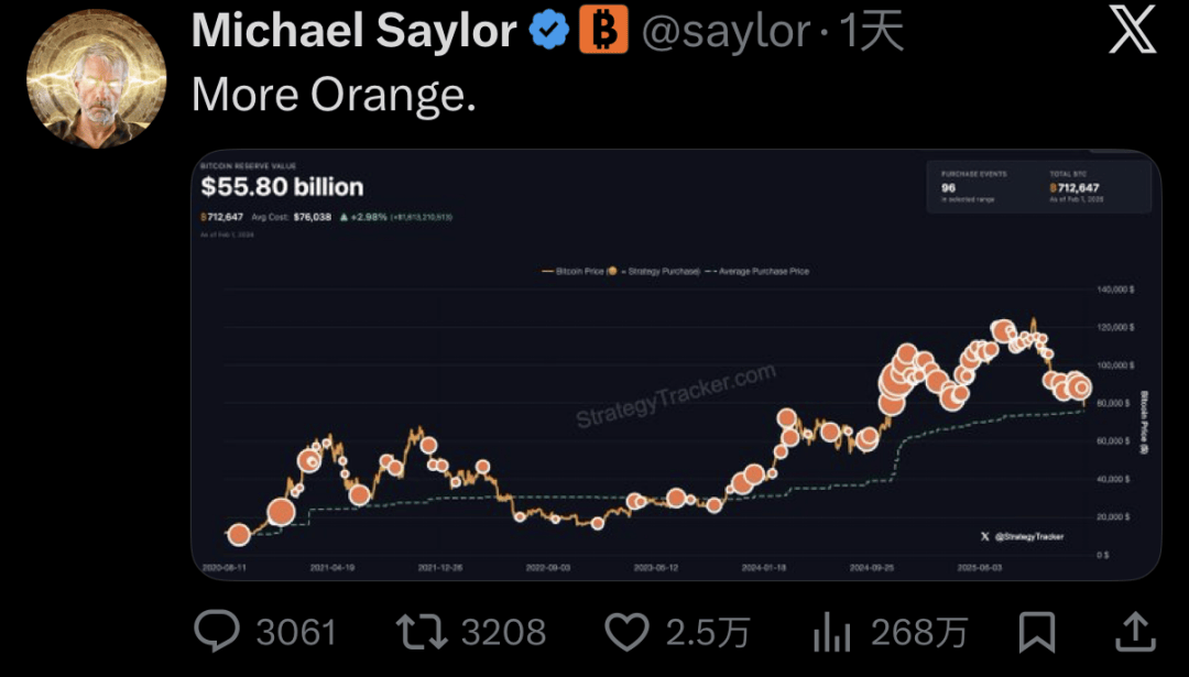 2026年,比特币价格再次跌穿了 Strategy 的持仓成本线,可是他仍然在继续买入,没有任何恐惧,就像。。。一个磕了药的僵尸。