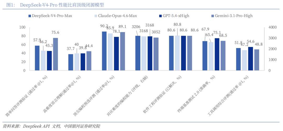 DeepSeek正式发布新一代国产大模型DeepSeek V4系列,包含旗舰版V4-Pro(1.6万亿参数)和高效版V4-Flash(2840亿参数),全量开源并支持百万级长上下文处理。该模型基于混合专家(MoE)架构,在推理性能、Agent能力和成本效率上实现突破,API价格仅为同类闭源模型的1%-20%。DeepSeek-V4代表的是“低成本+可扩展”模式。DeepSeek-V4的创新重点不在单点能力极限,而在系统效率与可扩展性方面,主要体现为:一是超长上下文能力实现架构级突破。通过稀疏注意力机制组合优化,实现百万级token原生支持,推动模型从“分段处理”向“整体理解”演进。二是推理成本大幅下降。其定价显著低于同类闭源模型,具备将大模型由“高成本工具”转化为“普惠型基础设施”的潜力,对产业应用模式具有重塑效应。三是开源与私有化部署能力突出。支持企业自主部署与二次开发,有助于提升数据安全性与技术可控性,降低应用门槛。总体来看,该路径的核心特征在于:通过开源策略与工程优化,推动人工智能能力向基础设施层下沉,实现规模化普及(见图1)。