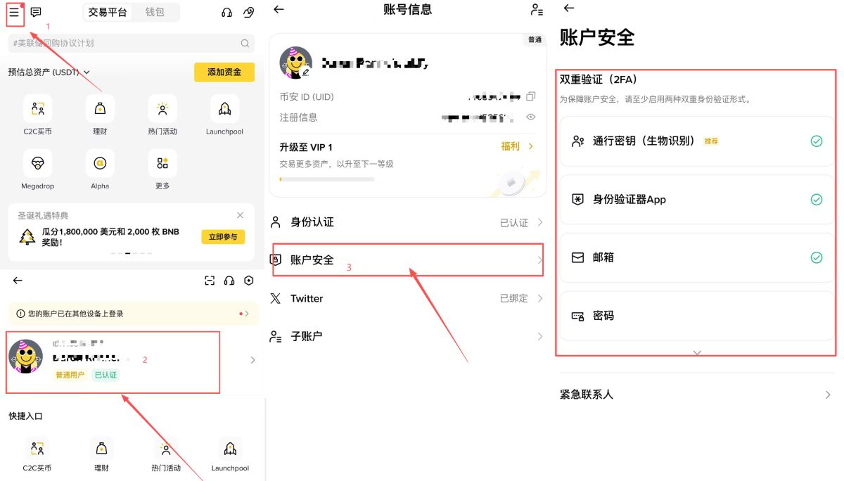 注册完成前往「安全性」进行双重验证( 2FA ),可以保护帐号的安全性,建议一定要完成!